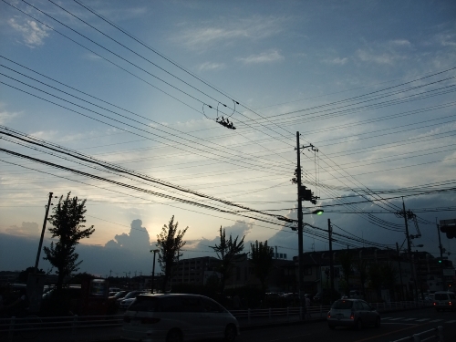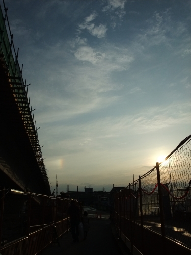 暑かった。暑かった。暑かった! ぬぎゃあいいんですけど、寒さ恐怖症みたいなね、感じなので いっぱい着てましたら、汗かきました。 昨日、クスリをいっぱいもらう病院で簡単な健康状態のチェックをしてもらう、と書きましたけど 熱も測ったの。そのとき37度あったんですけど もしかしたら着すぎのせいでオーバーヒートしてるのかもしれませんよね~~~ と言ってみましたら、それはありますよ、と言われました。 これ、おもしろいでしょう。 上のへんな屋根みたいなのは建設中の高速道路。 高架下にいるの。下側もだから建設資材とかパワーショベルとかいっぱいのそういう場所でした。 同じ場所。上の写真よりもっと建設中の場所て感じ。 真ん中の、わかりますか? もう一枚。 虹だよ。 ここにしか見えなかった。 全然、アーチ形状じゃなかった。 これね、街路樹の向こう側は雲なの。すごい変な作り物みたいな雲だった。 ちょっと歩を進めてからまた撮ってみた 今度の屋根みたいなのは、 バス停の屋根。 駅前にいるの。 このあと電車に乗ったらね、月があがったばかりで、ぽっかりすごく大きなうすく色づいた月で、 だんだん色が濃くなってってね 最寄り駅から自転車で帰ってる頃は、少しぼんやりしてたけど、黄味の強い、赤い月ってほどじゃあないけど うわぁ、て感じの月だった 今はもう高い位置に来てるからすごく、明るいんだ パワーありそう お気に入りに入れてる月のサイト(http://www.moonsystem.to/)に行ってみたら、明日が満月みたいです ん?5日の1時ってことはもうすぐ一番に満ちてる状態だから満月なんだね ほったらかしのムーンストーンに浴びさせてやるかなぁ おやすみ 今日はもうほんっと疲れたから、寝なきゃぁな ナオ PR コメントを投稿する
