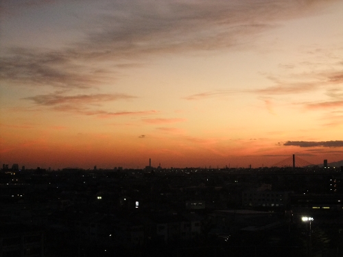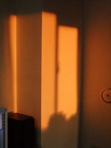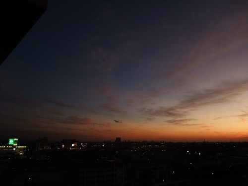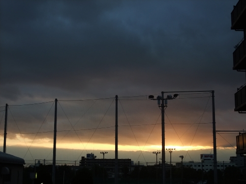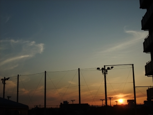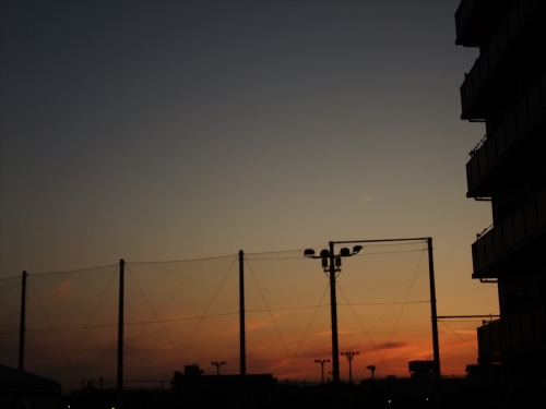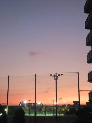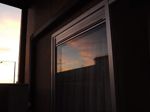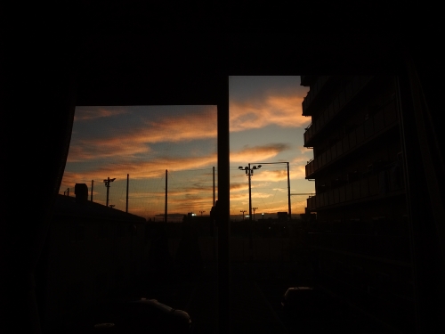 昨日はすごく、一日中雨が降った。 窓を開けていたら、雨が吹き込んで、窓枠だけじゃなく、窓のある壁にくっついてる机よりもさらに室内の床まで濡れてしまったほどだよ。 でも、今日はとても天気がよかった。 この前、壁に映る夕焼けを載せたけど、今日は 窓から見える夕焼け空を。 いつも、この窓を開けて写真を撮るんだ。こういう風に。 ベランダに出たらこんな感じなんだ。部屋に入る窓を撮ってみた。 窓に映る夕焼けにフォーカスすると、空はきれいに撮れないみたいだ。 また、急いでエレベーターに乗り込んだ。ほんとは地に這いつくばってる写真がいいとか言いつつね。 地平線みたいな、黒く写る町並みから空へとにゅにゅにゅて伸びてる細い棒は、吊り橋。目をこらしたらそれが確認できるだろうか。大阪湾へと通じる大きな川があるんだ。 もう少し右の方・・・・南?側を撮るとね 電気屋さんの緑色の明かりがアクセントになってるかな。 もう、クーラーいらないかもしれないね。日々、秋が深まっていくんだろう。 おやすみ /ナオ PR